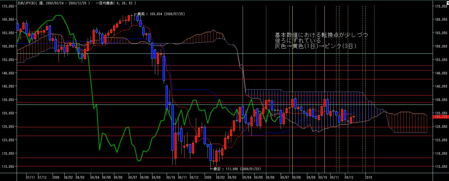 >月曜は転換線がもう一段落ちますので、やはりここは月曜火曜の値動きを確認しながら、転換日を探りたいと思います。