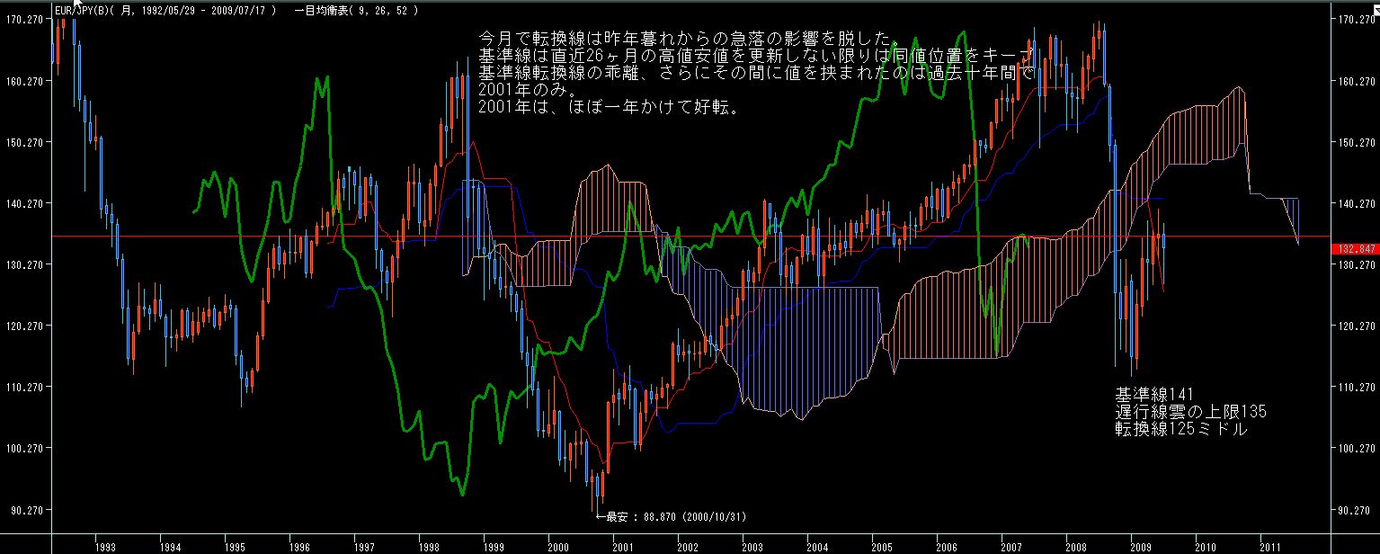 >月足的下落目処はやはり転換線125ミドル。基準線到達は相当先になりそうですね。