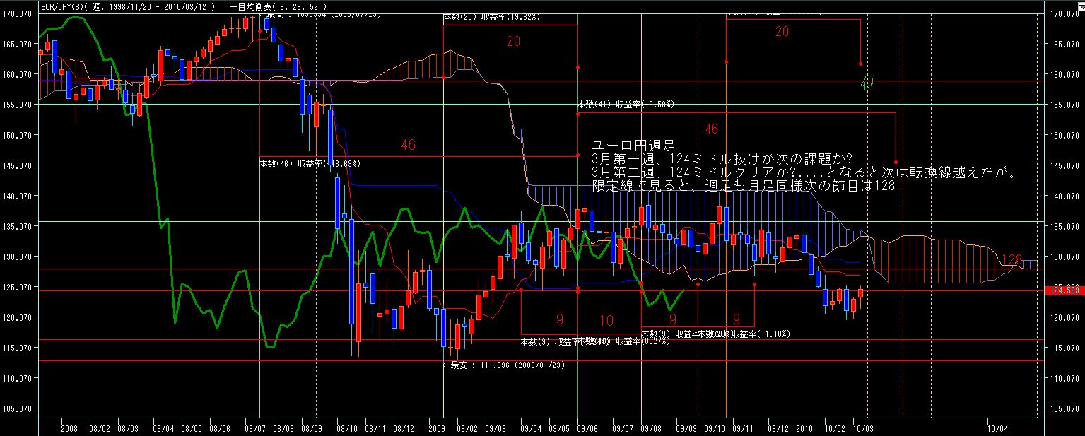 週間チャート観察ユーロ円2010年3月14日