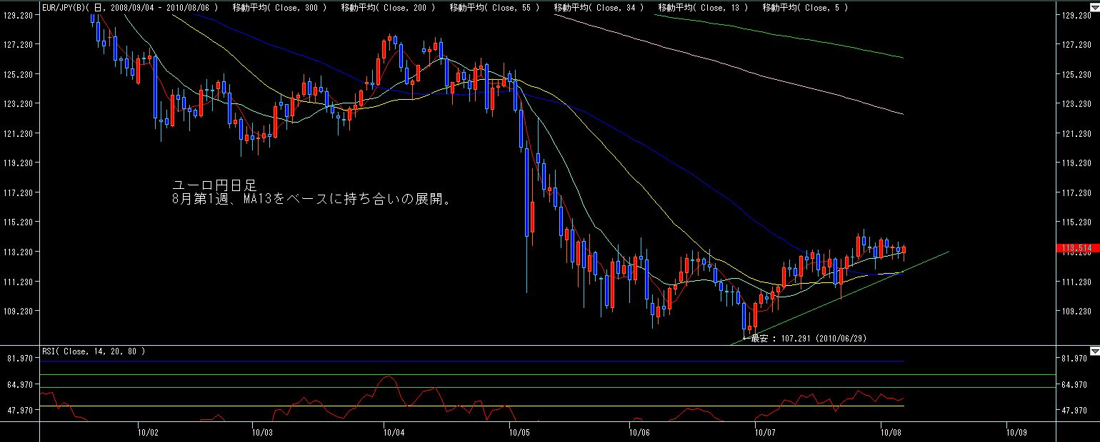 >日足を見ると、日柄的に、そろそろ次の波動が出てきてもおかしくないのですが.........来週はレンジ上抜けを見るのか、はたまた再度レンジ下限に向かうのか?