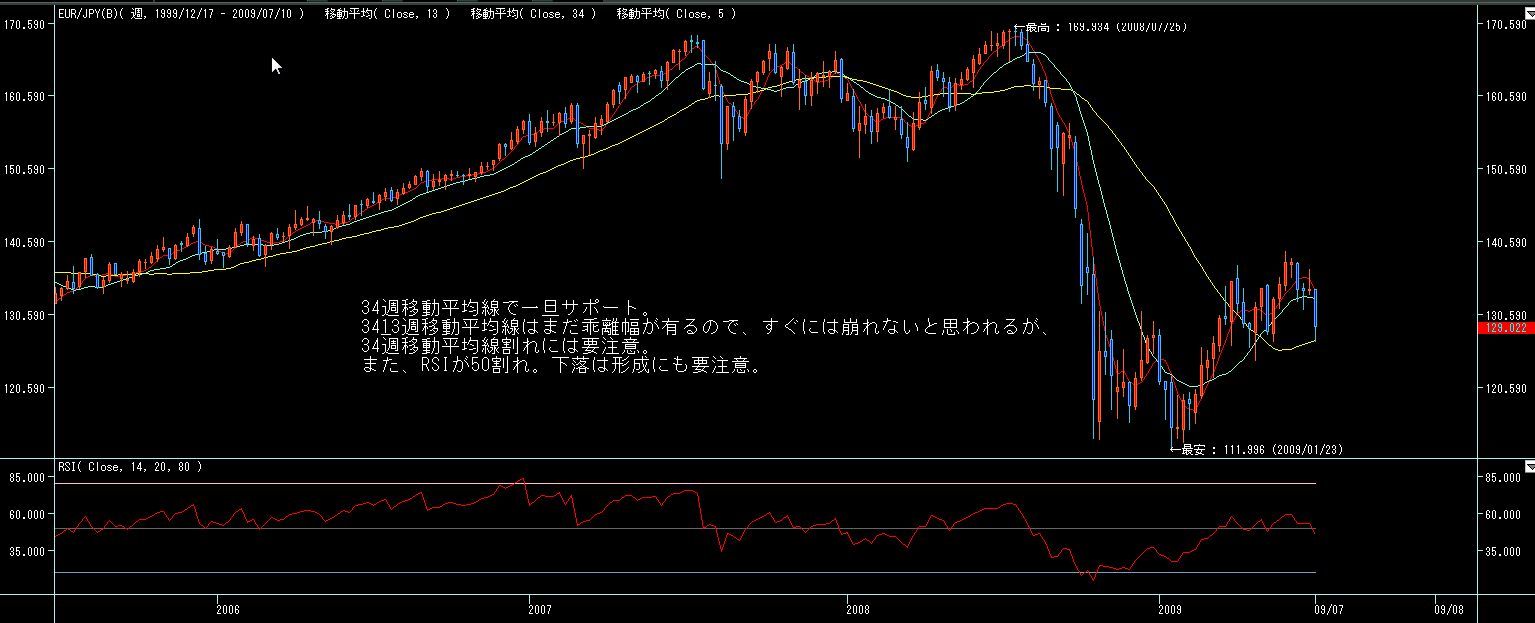来週は下落波としては、日足遅行線雲の下限割れと週足基準線を巡る攻防、週足34週移動平均線割れ....等に注目したいと思います。