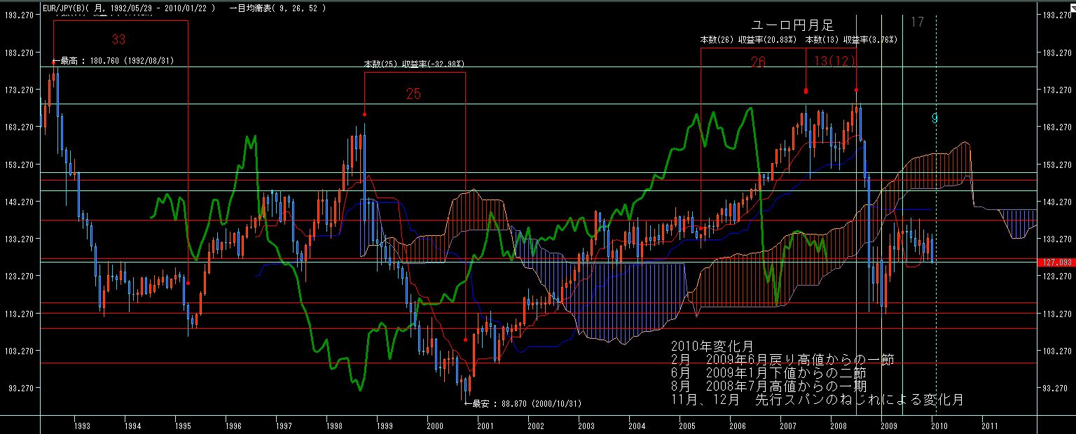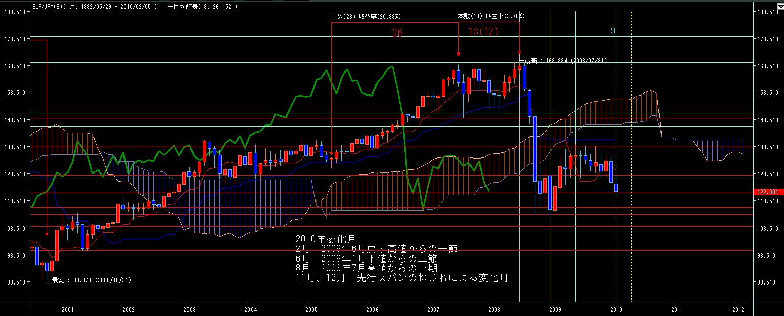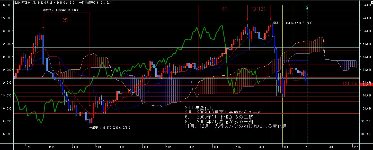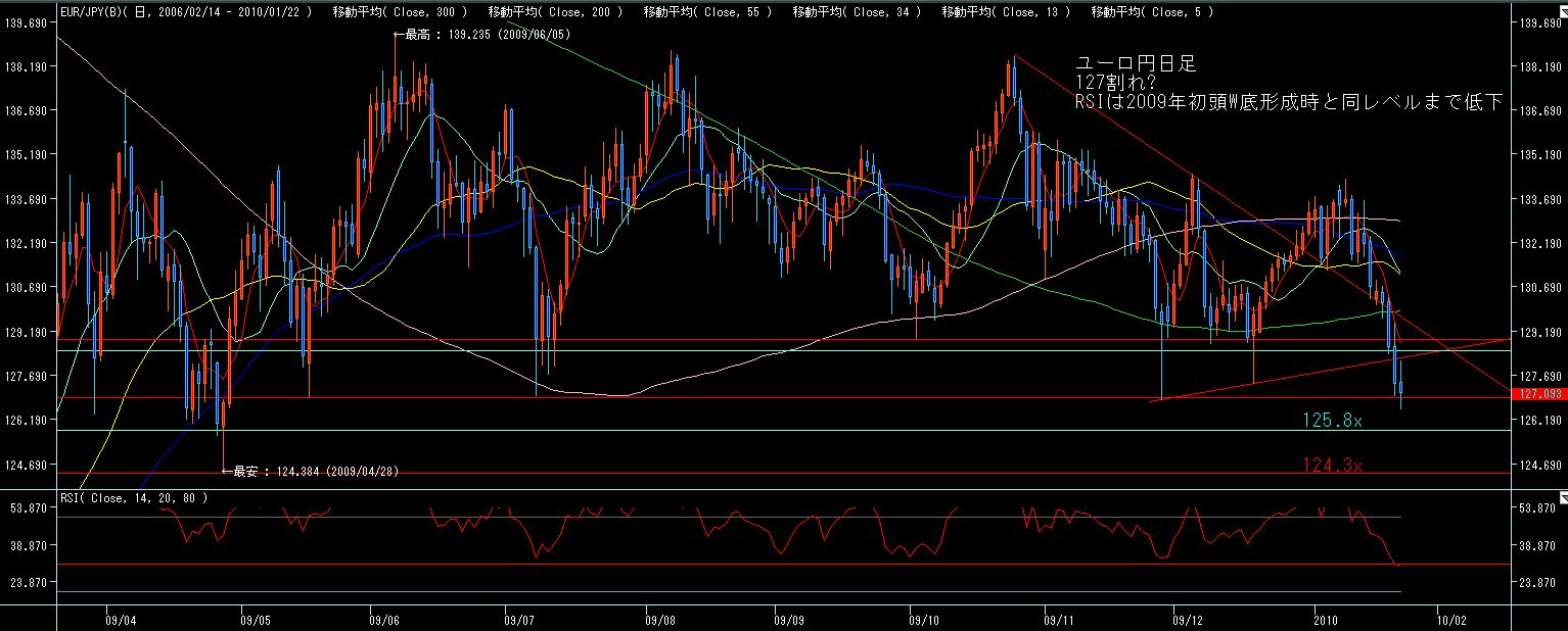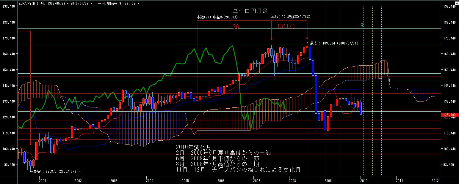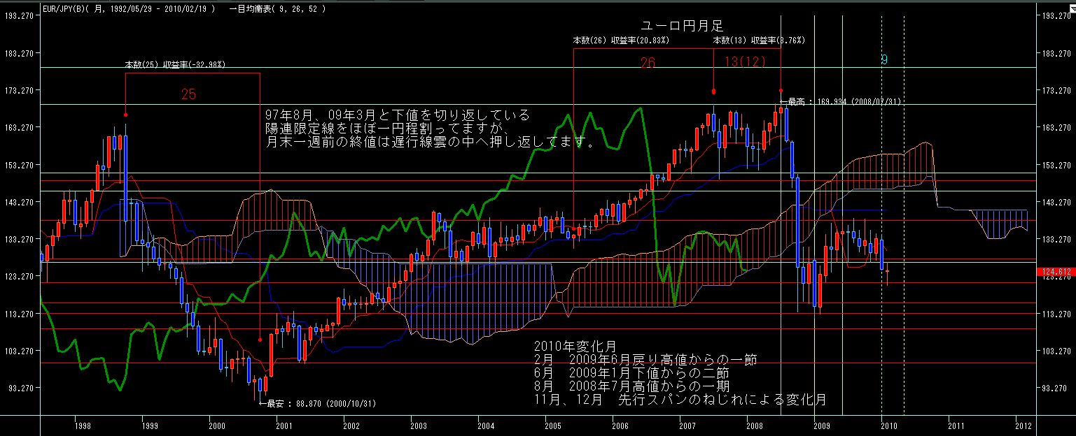 2010年最初の月が終了しましたが、戻りきれずに下落→下値更新、という典型的なパターン示現で、とうとうザラバ125円割れという展開になりました。