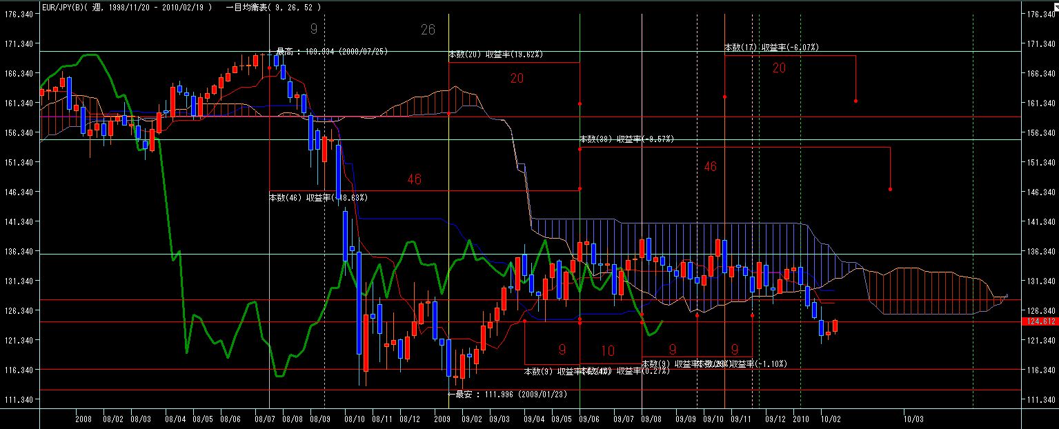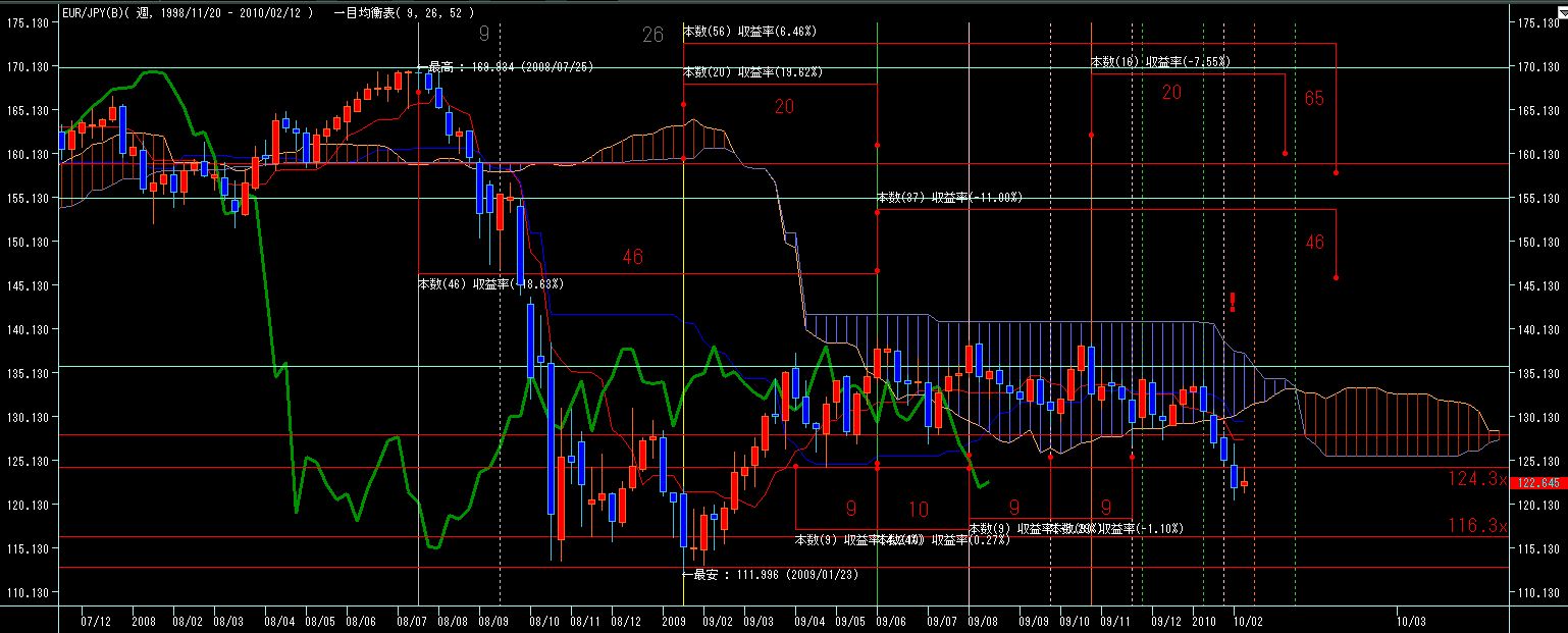 >逆に、来週ここから戻り、下ヒゲ出せば、重要な値位置127を付けた事と併せて、来月のローソク足は転換線戻りを目指すかもしれませんが.....
