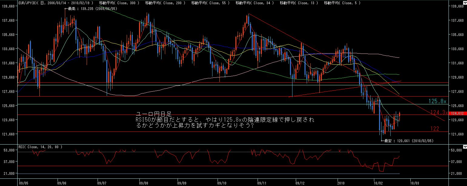 >週足としては、この下は124円台の陽連限定線が抵抗ラインとして意識されそうですが、それまでに(日足レベルの抵抗線において)反転するでしょうか?