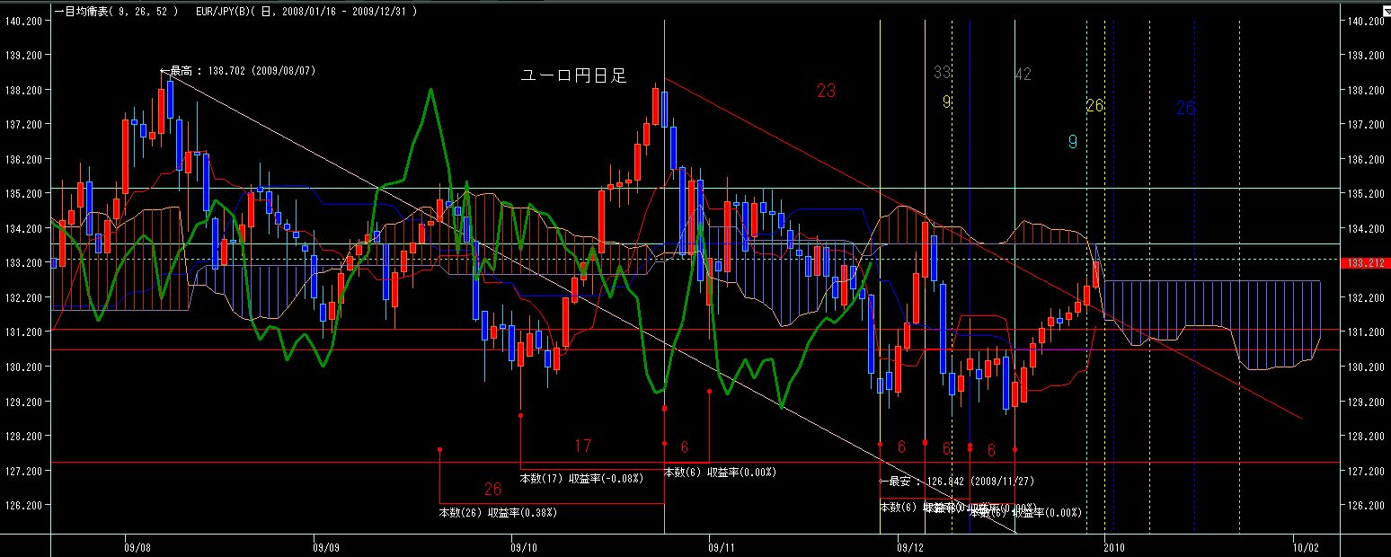 >ユーロ円は、今週中に遅行線が好転するのか?...はたまた逆転のまま11/26の陰線の断崖を滑り落ちるのか?