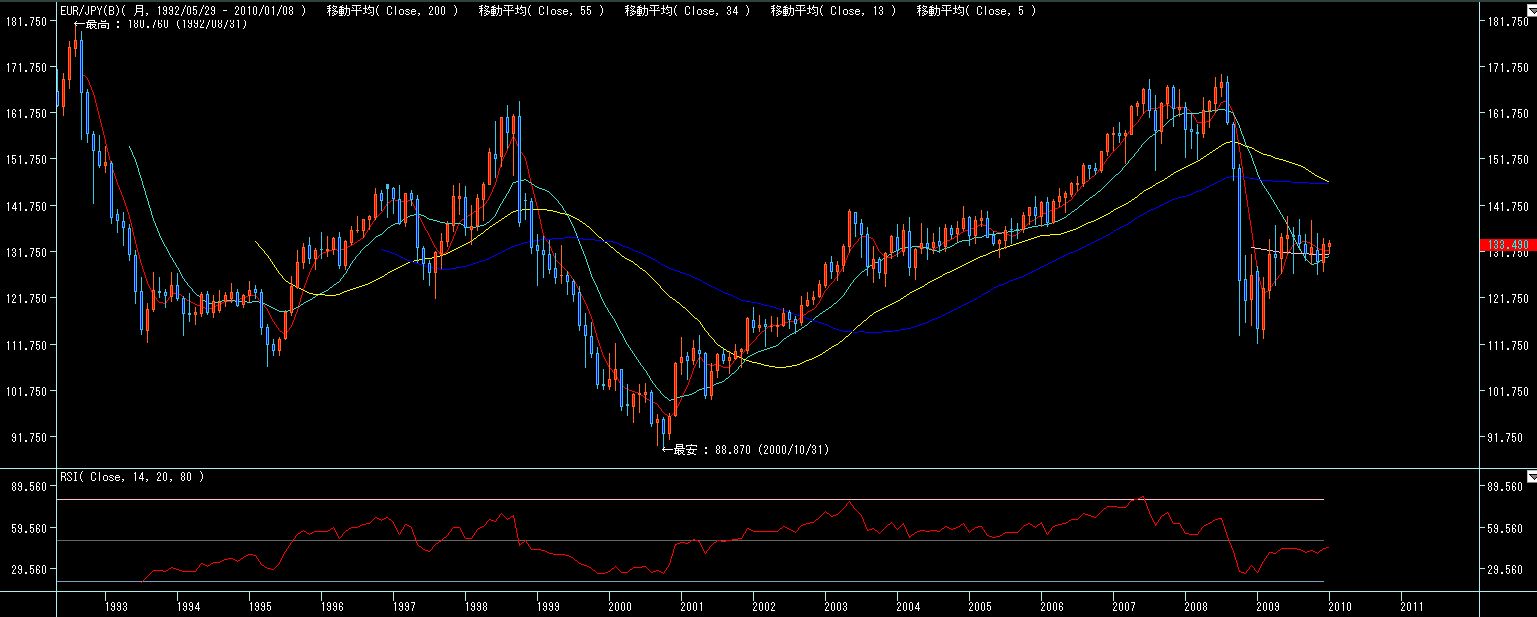 >過去のユーロ円の急落は92年、98年、03年は上昇波ストップするも下落はせず、