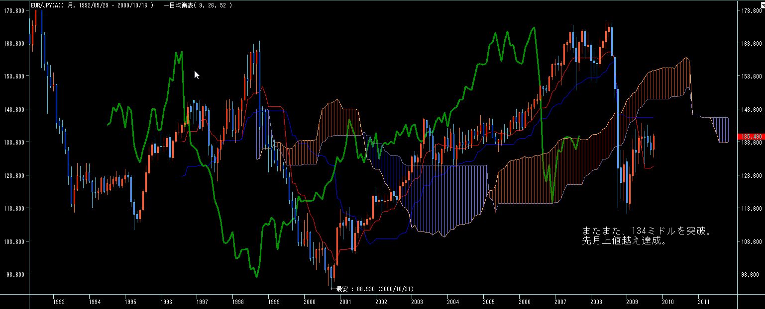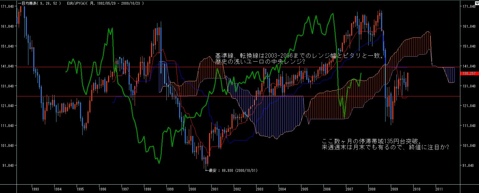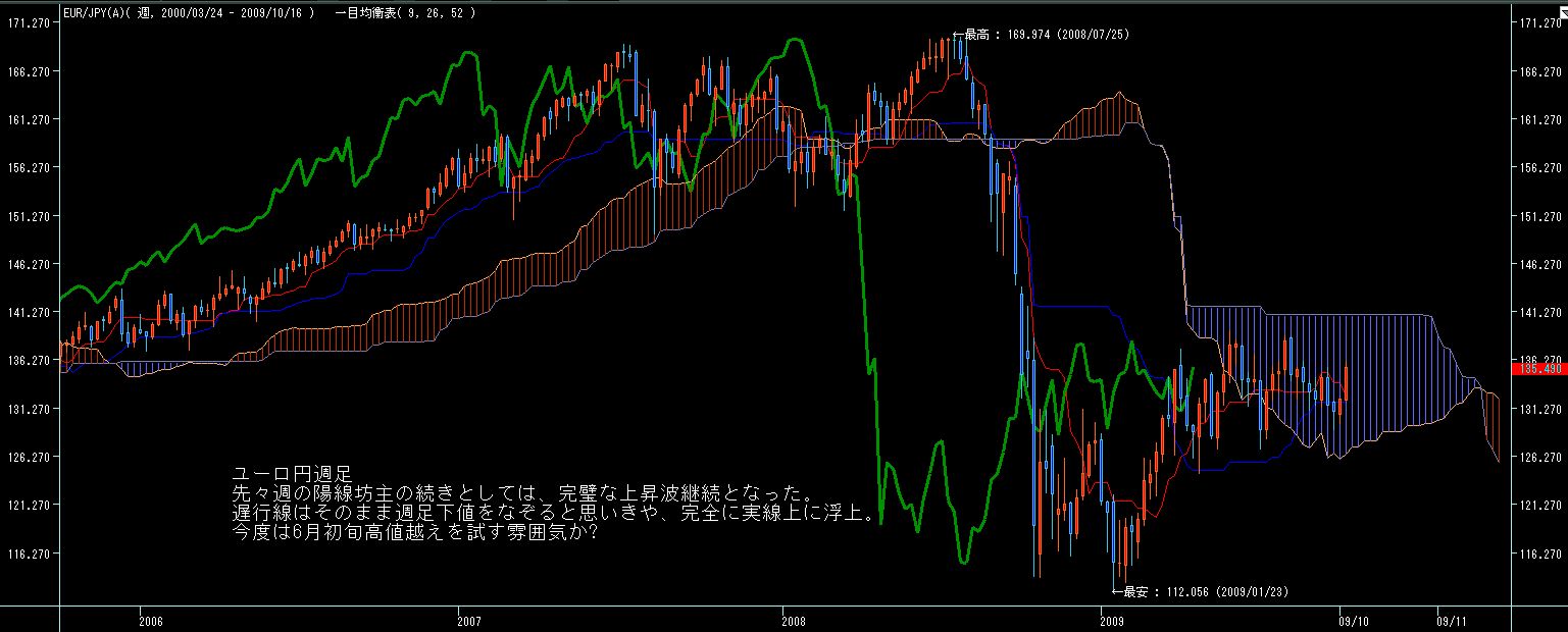 こけで雲の上限抜ければ三役好転。という事は再来週あたりをターゲットに92円後半定着がドル円の上昇継続のカギとなりそうです。