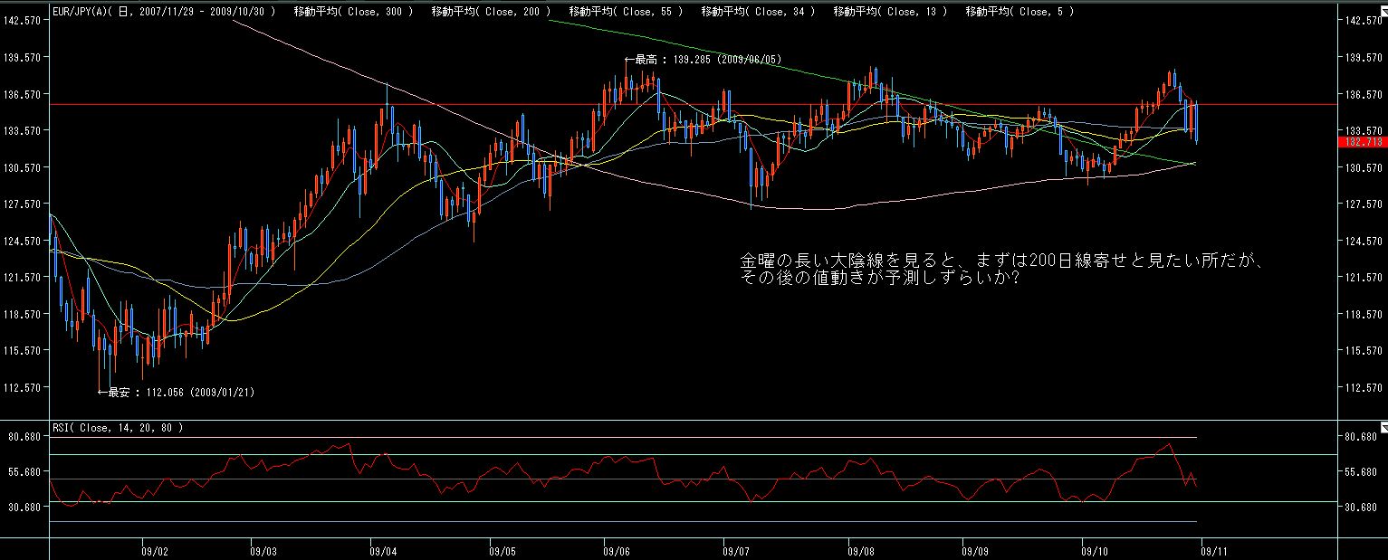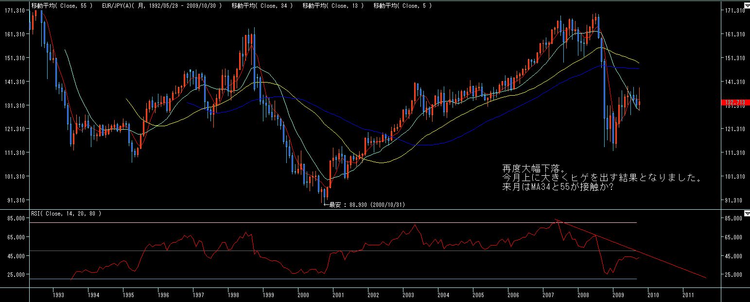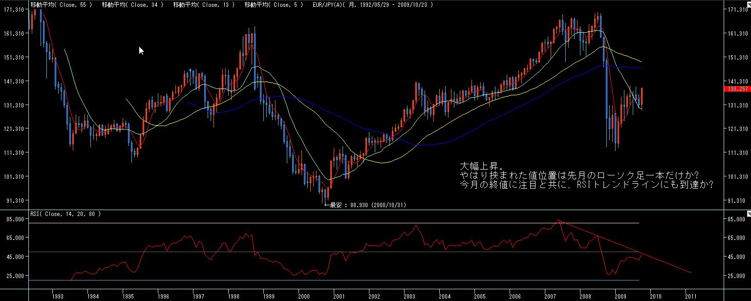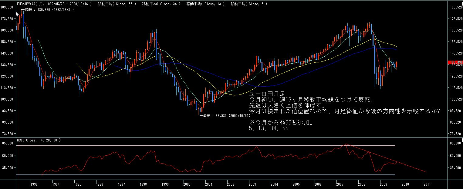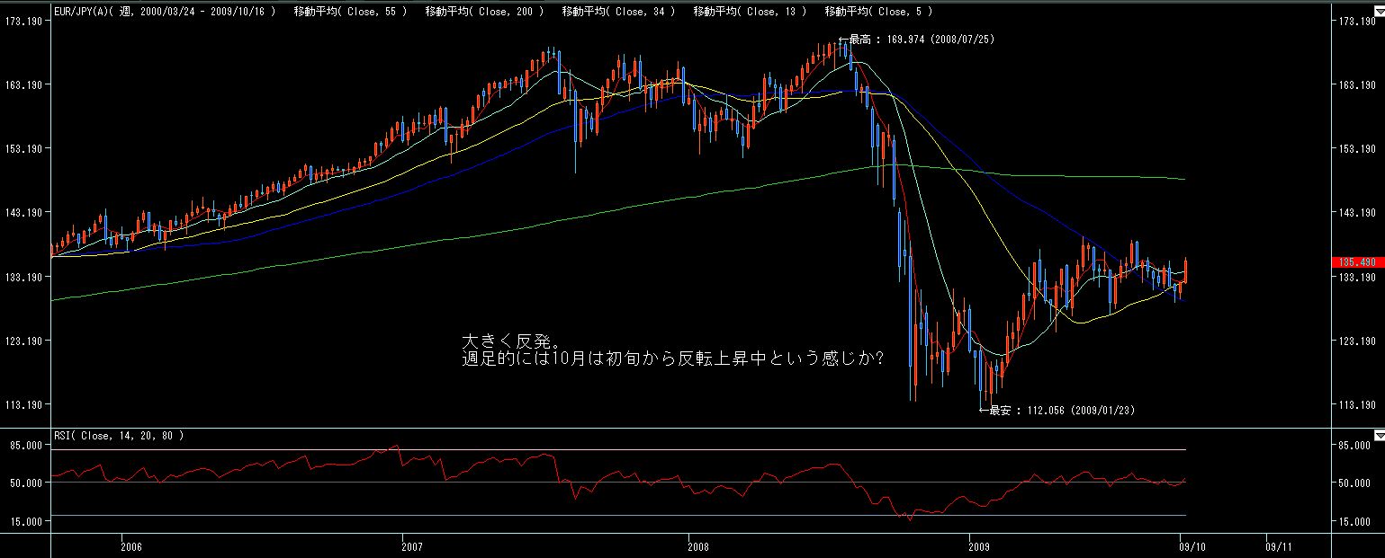火曜から金曜まで、ドル円、ユーロドルがまったく動方向に動いた為、ユーロ円はそれらがデフォルメされた激しい値動きとなりました。